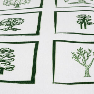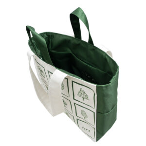Malzeme: Geri dönüştürülmüş, su geçirmez, vegan ve yüksek gramajlı özel bir kumaş üzerine dijital baskı tekniğiyle üretilmiştir.
