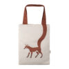 -Figürlerin uzantısı olacak şekilde tasarlanan baskılı saplar, aynı kumaştan desenli iç astar ile çanta özelleştirilmiştir.