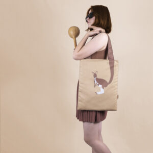 -Figürlerin uzantısı olacak şekilde tasarlanan baskılı saplar, aynı kumaştan desenli iç astar ile çanta özelleştirilmiştir.