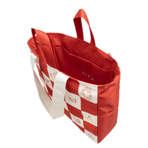 Malzeme: Geri dönüştürülmüş, su geçirmez, vegan ve yüksek gramajlı özel bir kumaş üzerine dijital baskı tekniğiyle üretilmiştir.